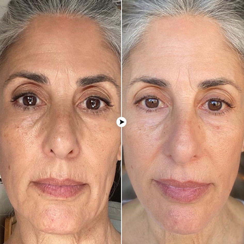 Continued use may lead to a noticeable transformation with firmer, less puffy skin under the eyes and more defined facial contours for a rejuvenated, plumper appearance.