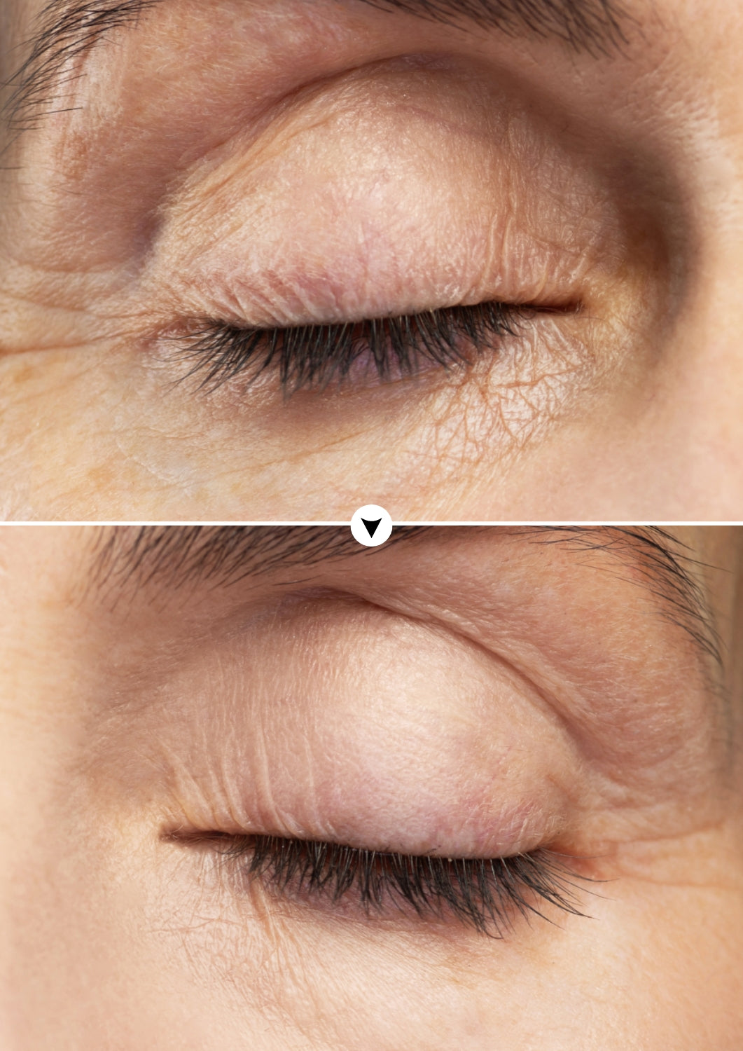 Eye contour appears brighter, feels smoother and more hydrated. Fine lines are less visible, showing improvement in elasticity and tonicity.