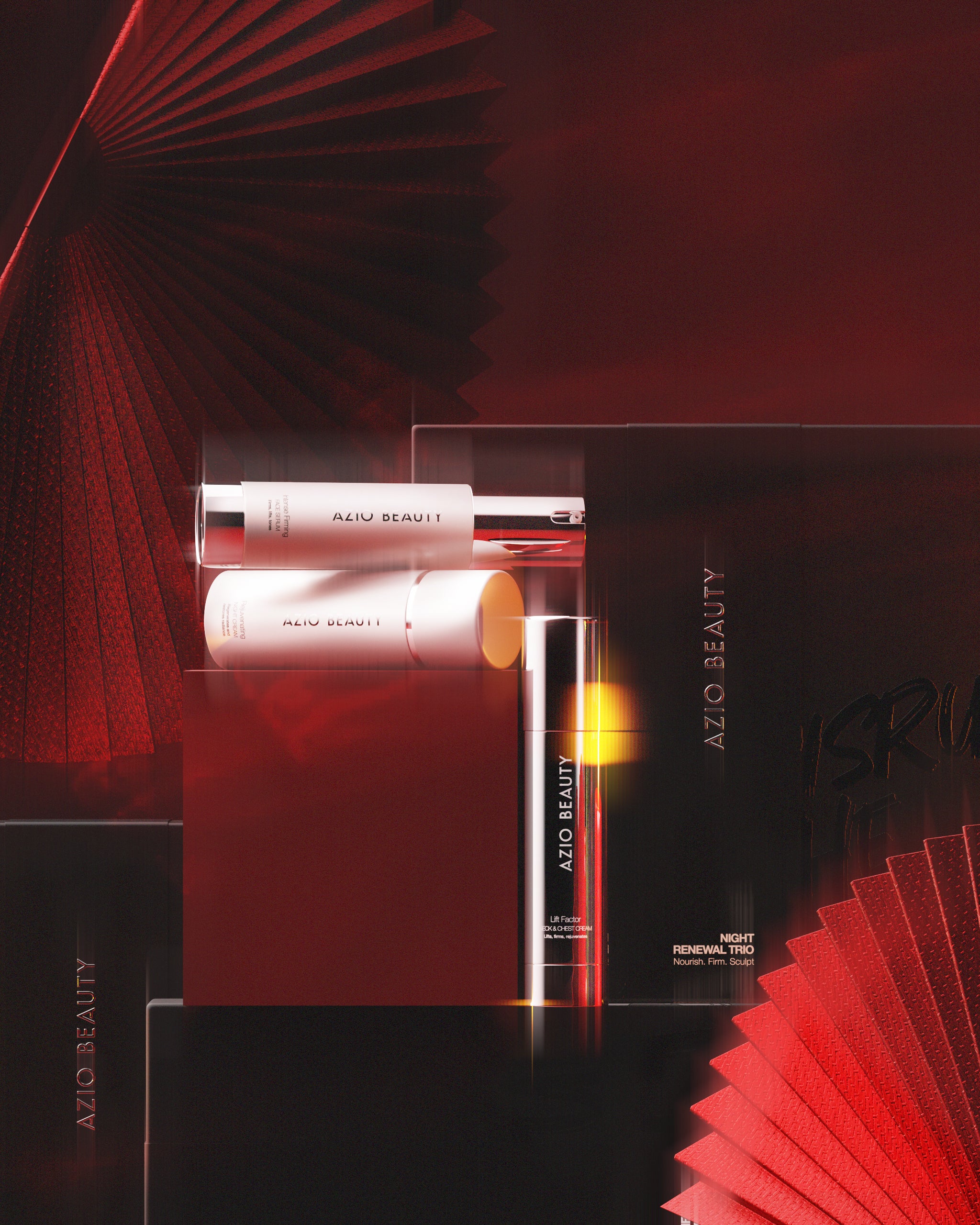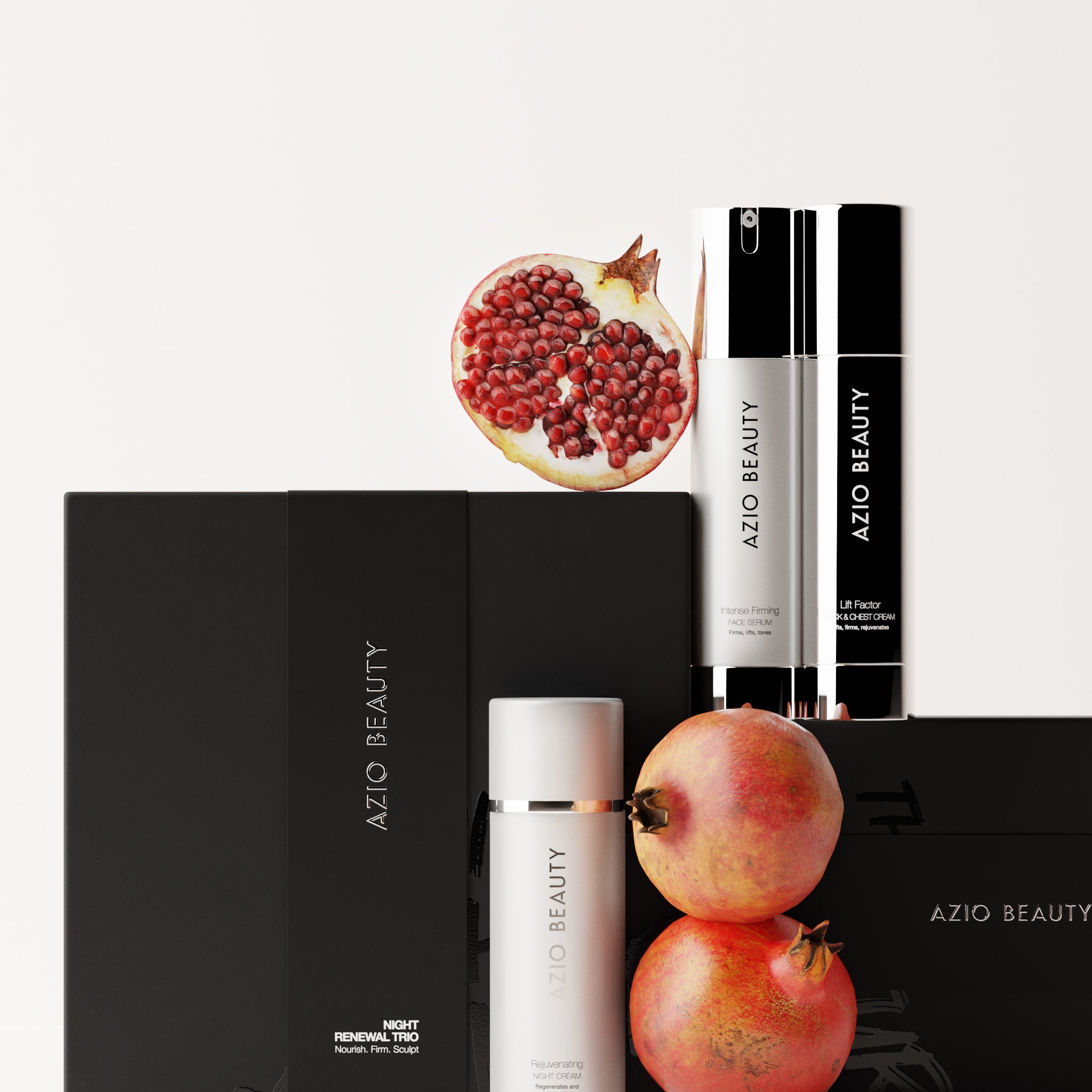 A curated edit of Azio’s high performing essentials, designed to work together across face, neck and décolleté. This three-steps night time routine firm, restores and redefines, targeting areas of structural decline for visible, lasting results.